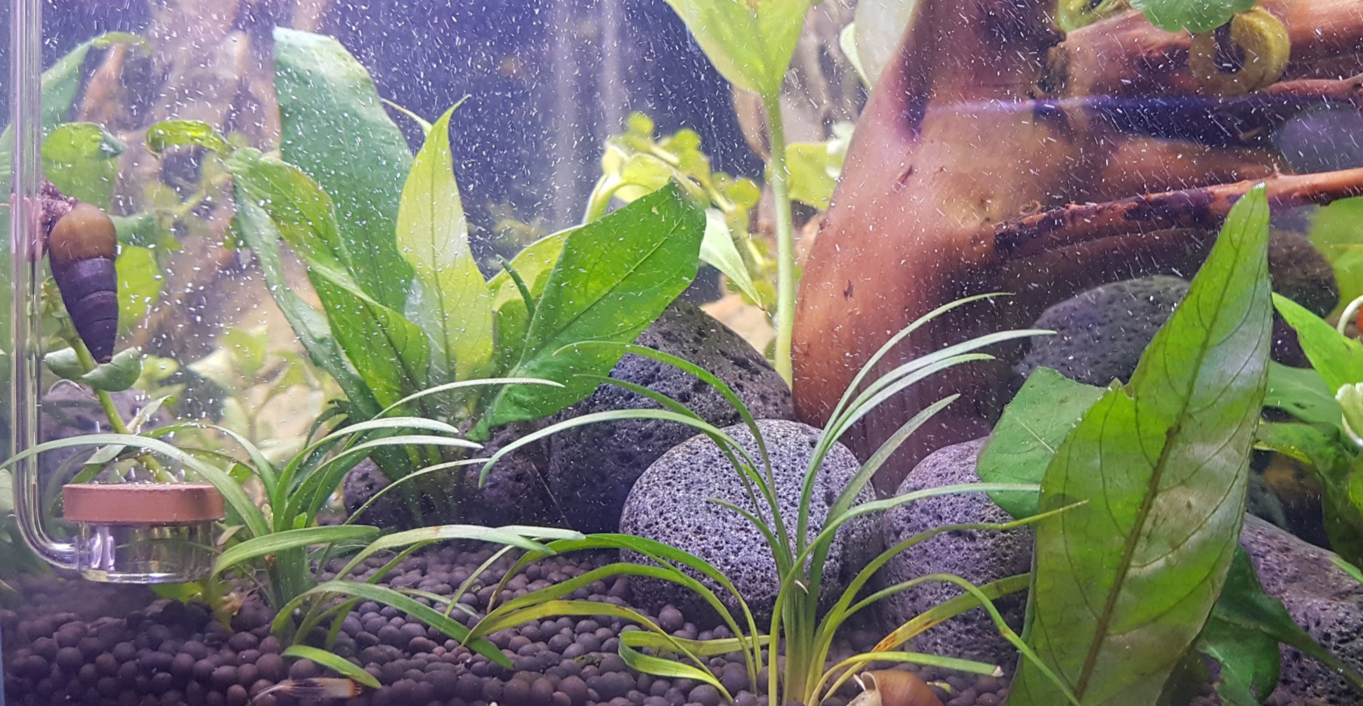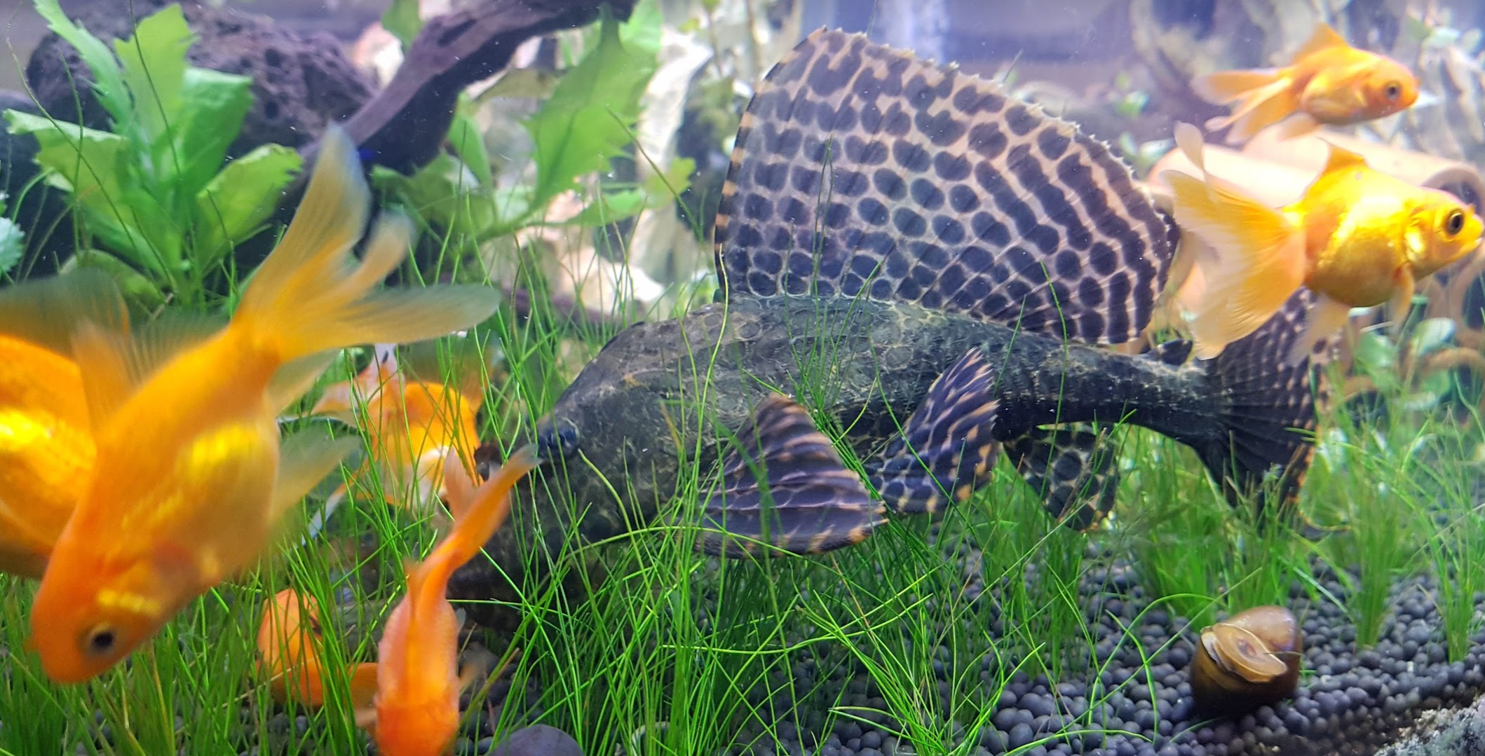 못했고 금붕어에게 먹히거나 뿌리를 제대로 내리지 못해 플레코 씨의 꼬리 한방에 수면으로