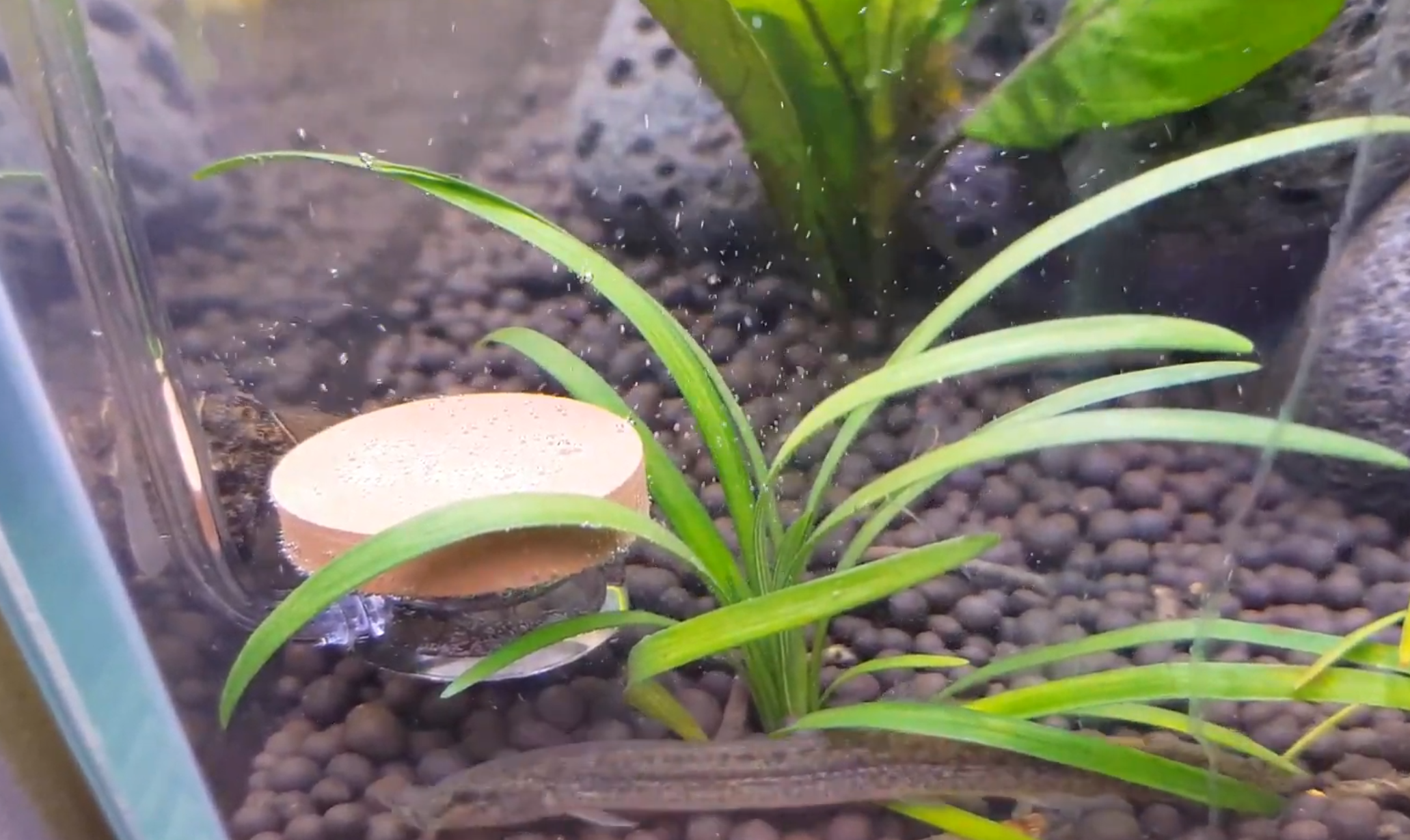 기존에 콩돌을 사용했을 때는 기포가 커서 그런지 금세 수면으로 다이빙하던데..