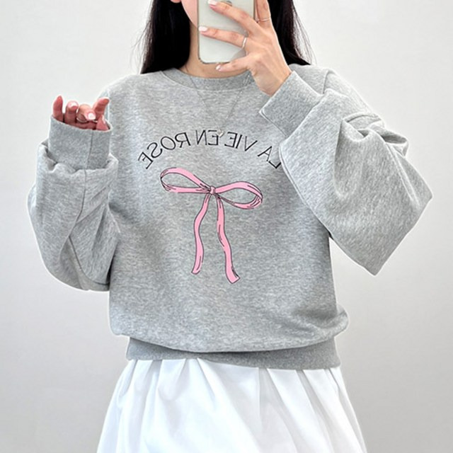 #[광고]걸즈토리,#여성용,#라리본,#세미크롭,#맨투맨티셔츠,#국내제작,#그레이,#Free,#Size,#리뷰후기