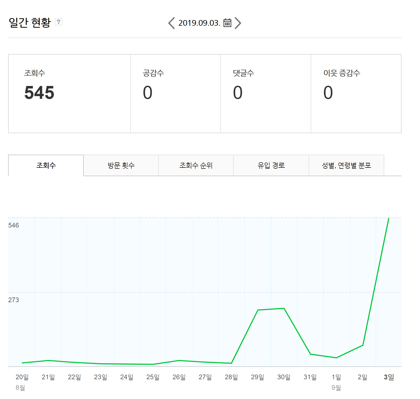 다른 블로그들처럼 심하게 방문자가 많은 건 아니지만 저렇게 그래프가 급회할때