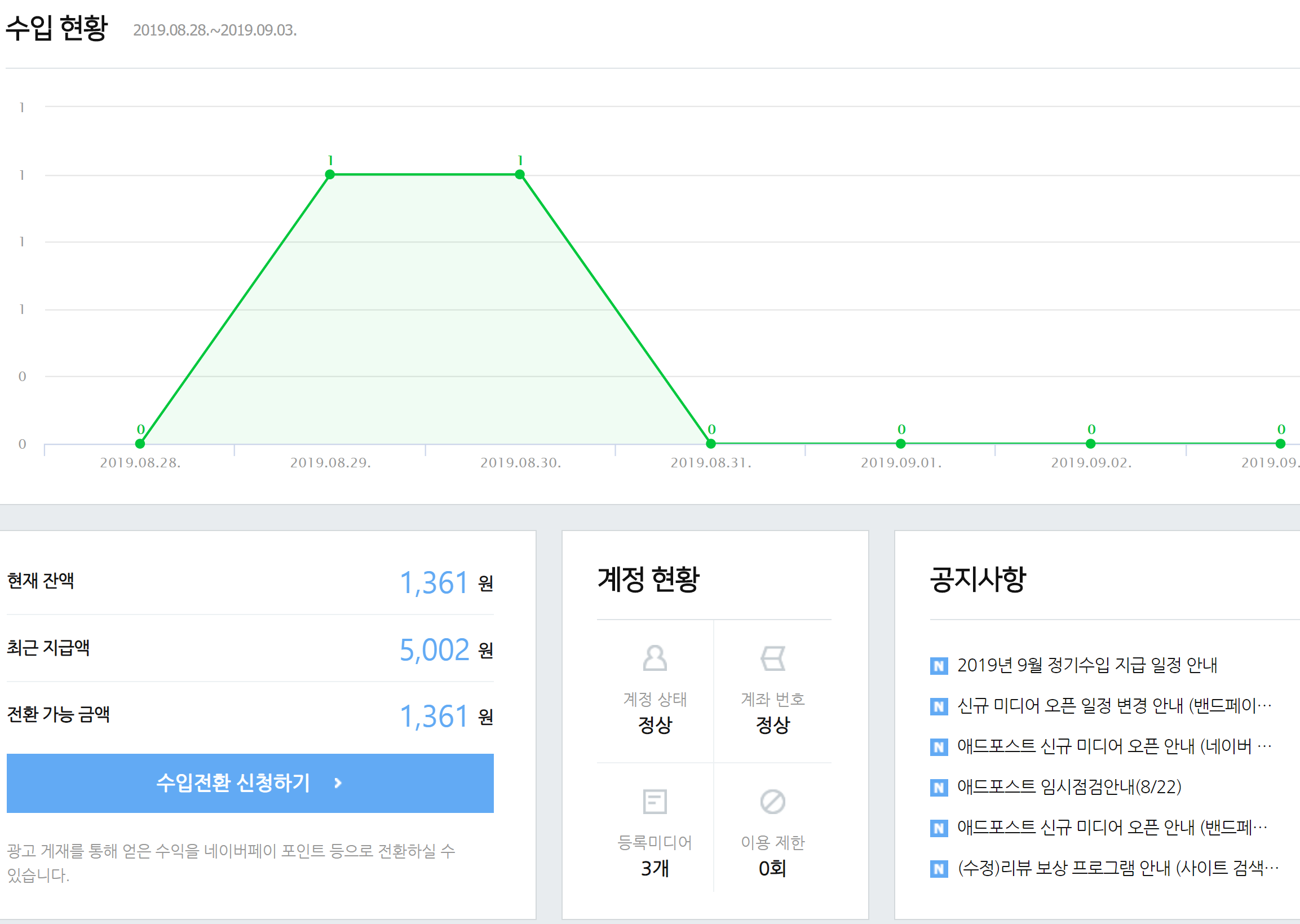 수익이 비례해서 상승할까해서 애드포스트 들어가서 확인해봤답니다.