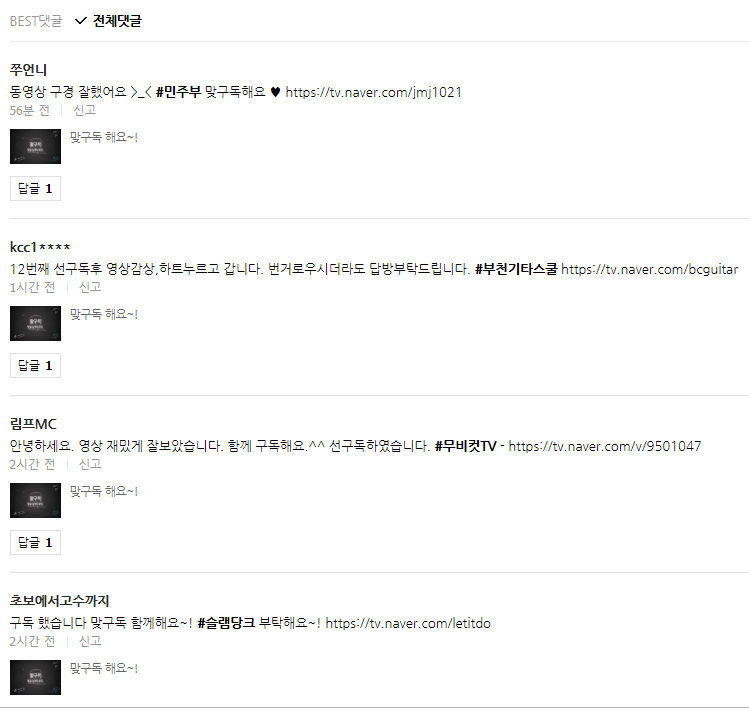 일주일에 구독자가 1도 안 늘어났는데... 저렇게 구걸식이라도 올려 놓으니 늘어나긴 하더라구요.
