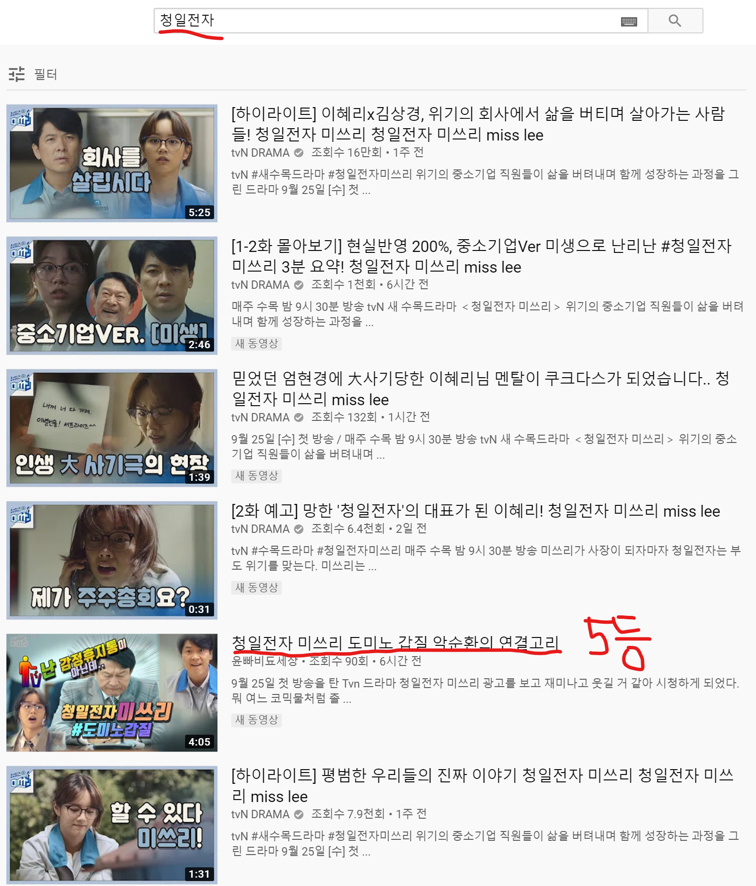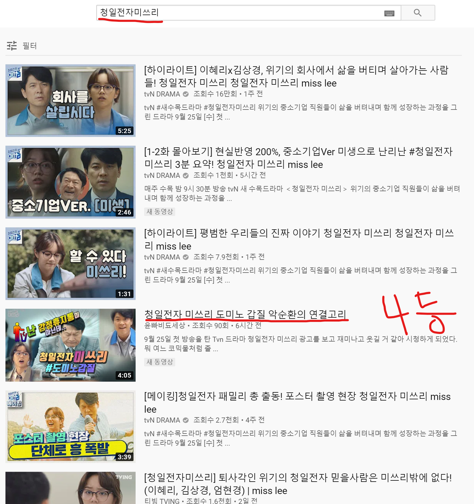 일단 "청일전자미쓰리"로 검색을 해보면 동영상을 올리고 나서