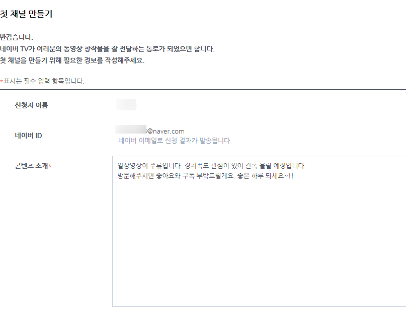 네이버티비는 영상을 올리려면 일단 채널을 만들어야 하더라구요. 저 채널심사가 끝나야만 본격적으로 영상을